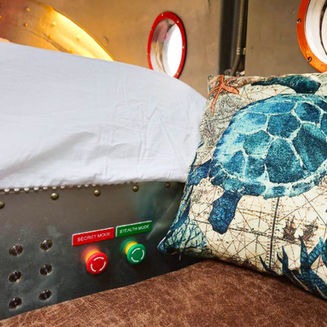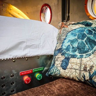 For your Undersea Adventure we have fitted a Double Bed, a Child-Size Single Bunk Bed up with the original controls and a comfy Sofa which doubles up as another Single Bed. Forget all those bring-your-own-bedding dramas, we’ve created an AMAZING space to stay with lovely linen and pillows and towels all provided.